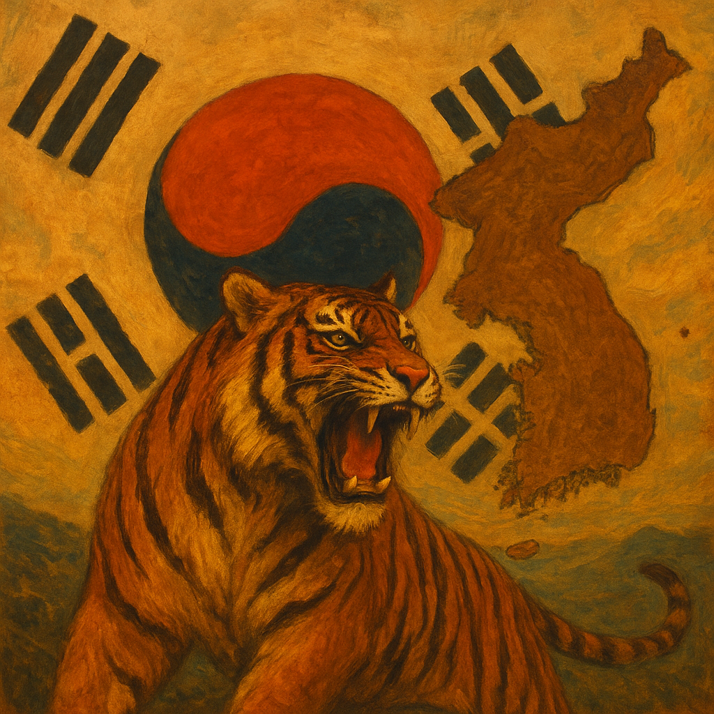 한반도의 기상을 보여주는 호랑이와 태극기 - AI 생성 이미지